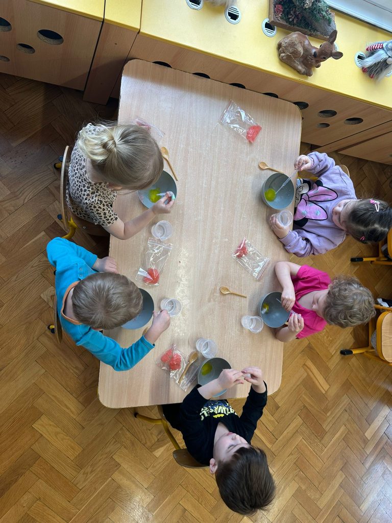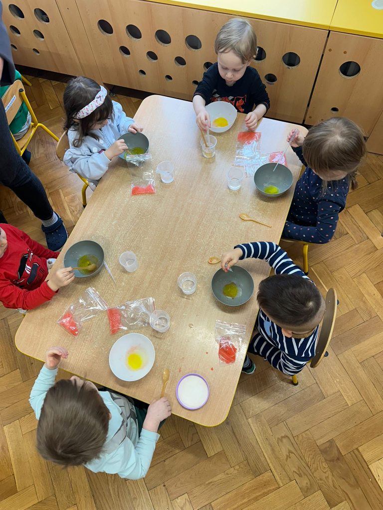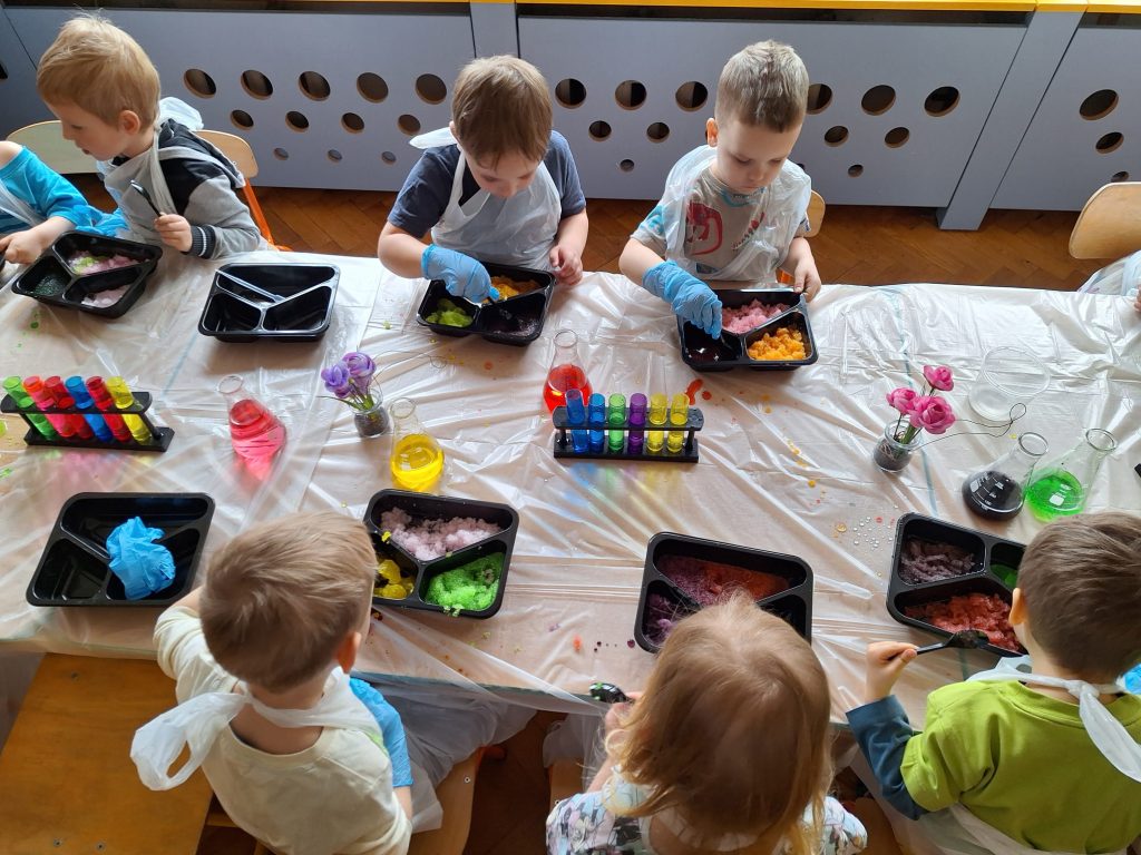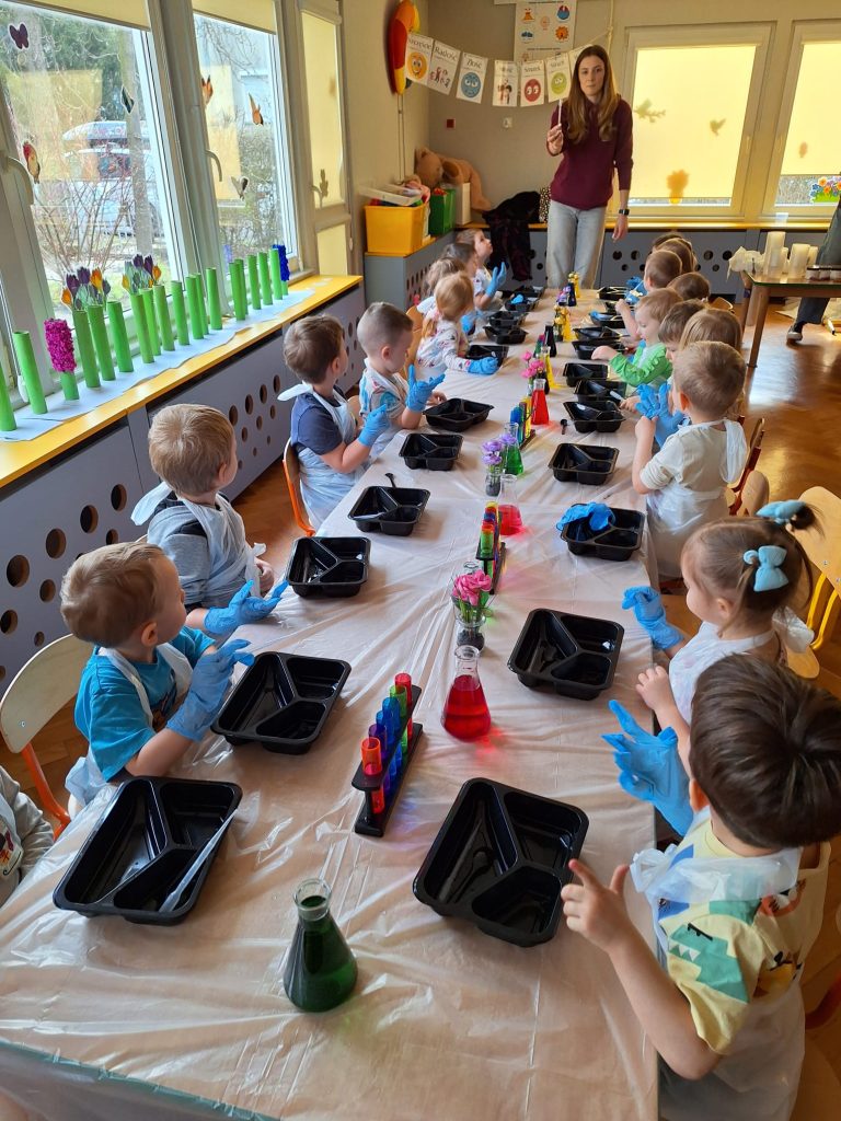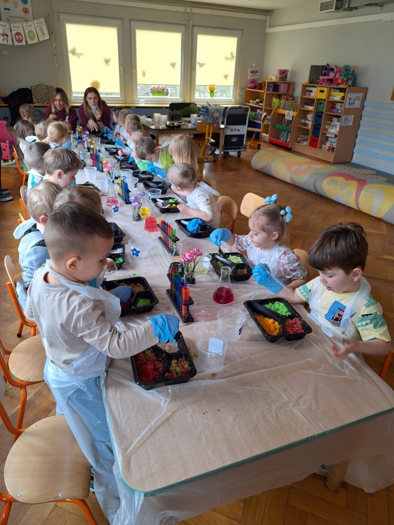 18 listopada dzieci wzięły udział w ciekawych eksperymentach. Dzieci z ogromnym zainteresowaniem obserwowały, jak zmieniają się kolory, pojawiają się niespodziewane efekty. Zabawy badawcze sprawiły im dużo radości i były świetną okazją do rozwijania ciekawości oraz poznawania świata.