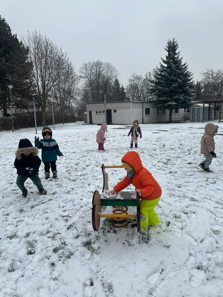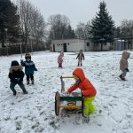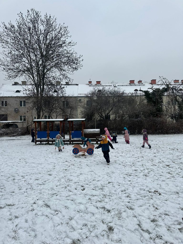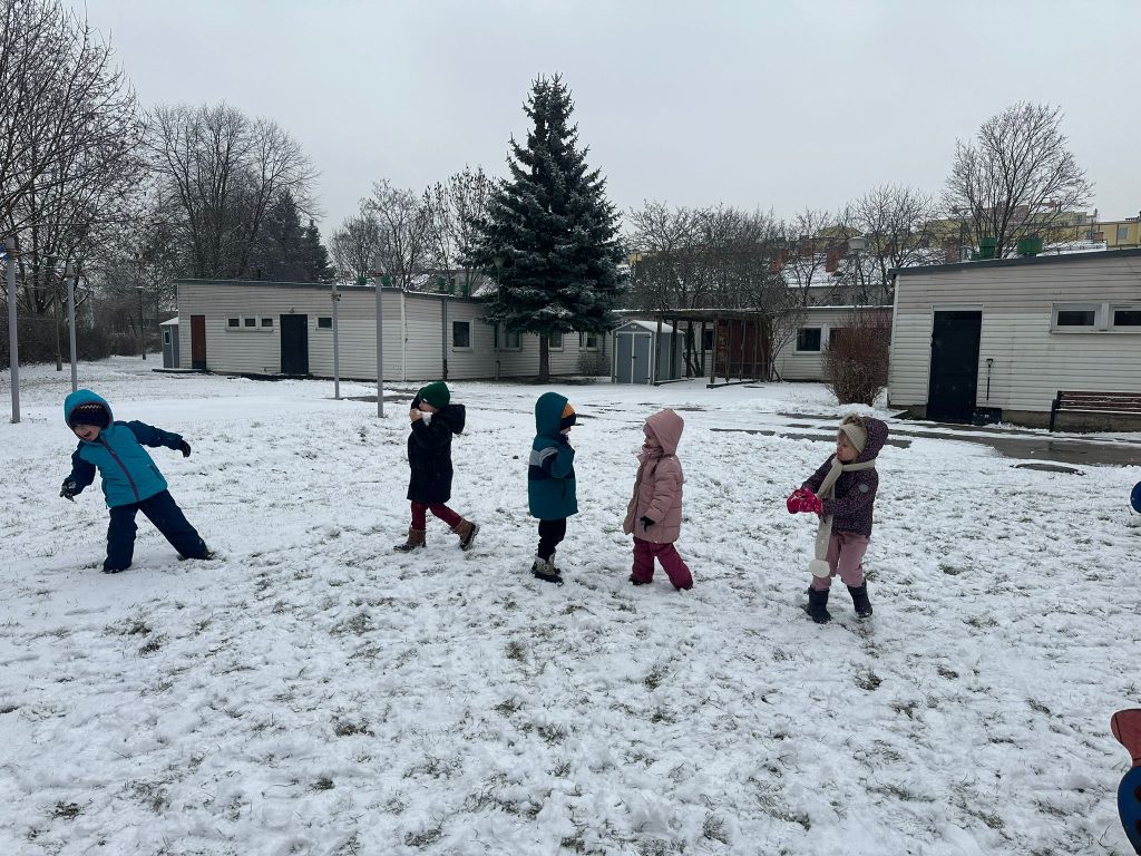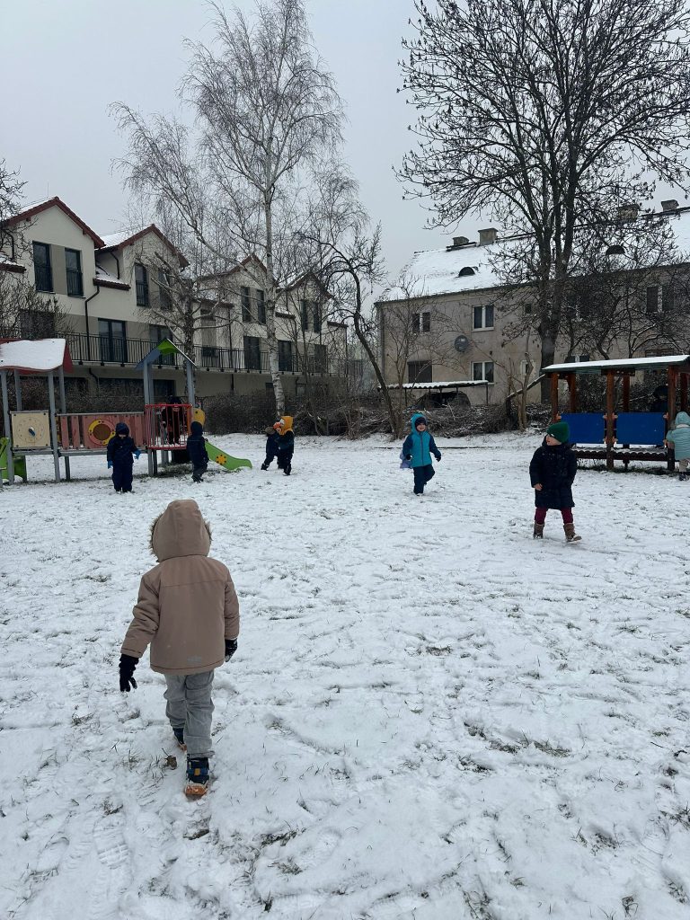 Dzieci z grupy Muchomorki wybrały się na podwórko, gdzie czekało na nie prawdziwe zimowe szaleństwo! ❄️ Z radością biegały po śniegu, rzucały się śnieżkami i tworzyły małe, białe arcydzieła. Na twarzach przedszkolaków nie brakowało uśmiechów, a zimowa aura dostarczyła im mnóstwo śmiechu i pozytywnej energii. ⛄️ ❄️