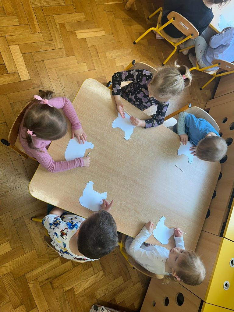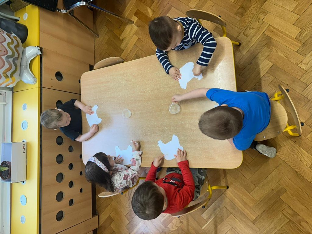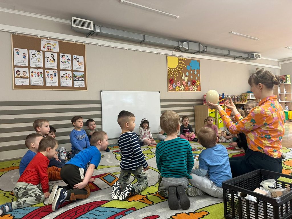 17.03.Dzieci z grupy muchomorki uczestniczyły w ciekawych zajęciach, podczas których obserwowały eksperymenty związane z jajkami. Następnie wzięły udział w części plastycznej – malowały kurczaki specjalnym atramentem. Swoje prace mogą dokończyć w domu razem z rodzicami – po ogrzaniu ich żelazkiem przez pergamin ukażą się wyjątkowe wzory, które wcześniej samodzielnie stworzyły. 🐣🐥