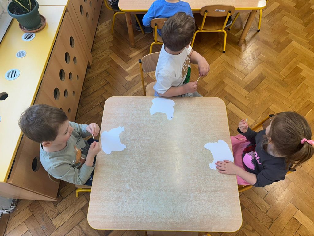 W grudniu wykonywaliśmy różne ozdoby świąteczne, samodzielnie ubraliśmy choinkę i śpiewaliśmy kolędy. Uczyliśmy się też słów związanych ze świętami w języku angielskim i śpiewaliśmy piosenki świąteczne w języku angielskim. W piątek 19 grudnia oglądnęliśmy piękne jasełka w wykonaniu najstarszej grupy w przedszkolu i zjedliśmy wspólnie świąteczny posiłek. Życzymy wszystkim Zdrowych i Wesołych Świąt Bożego Narodzenia i Szcześliwego Nowego Roku 2026!